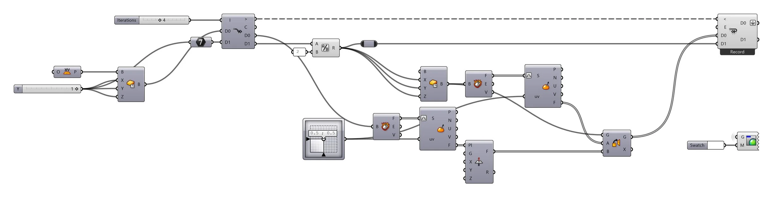 Recursions: Cube to Octahedron This script uses loop functions to reiterate basic geometric transformations.